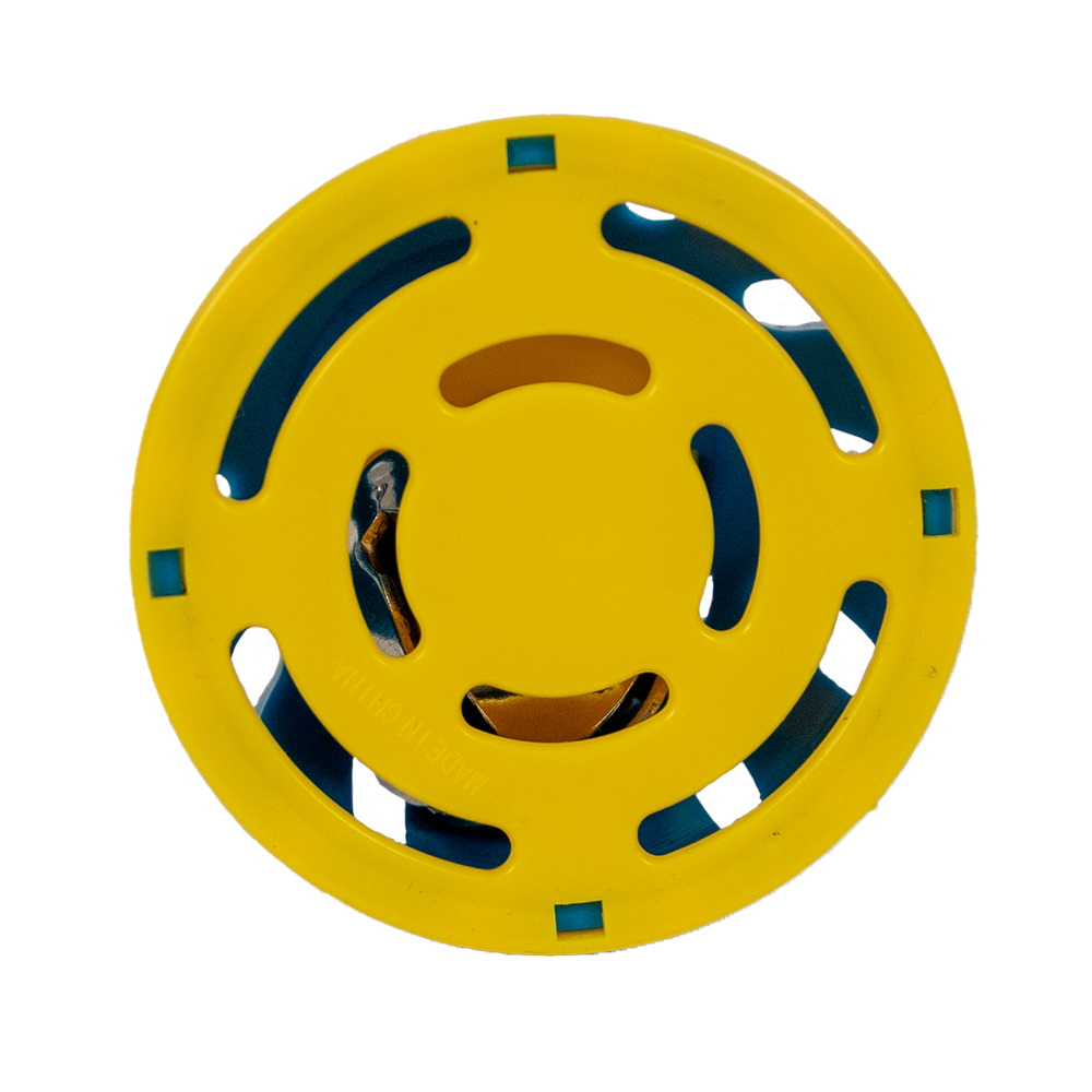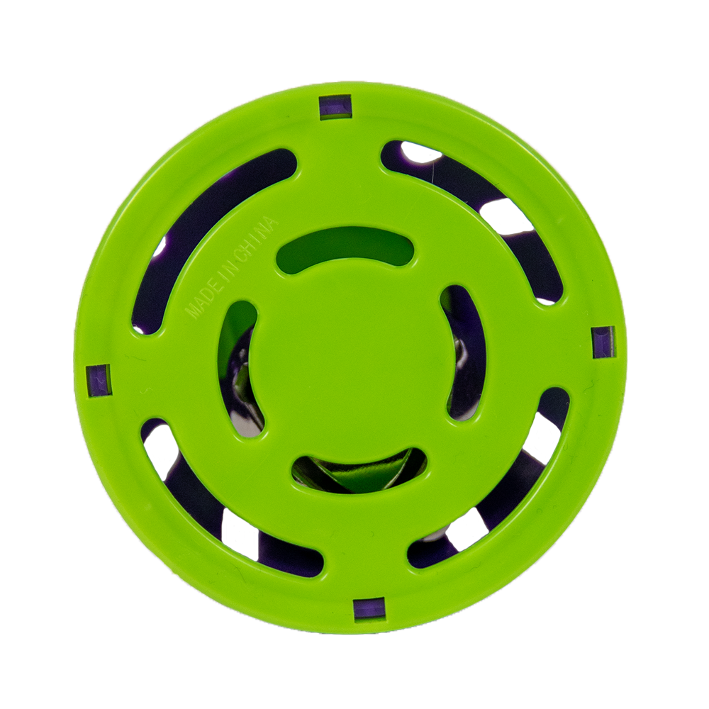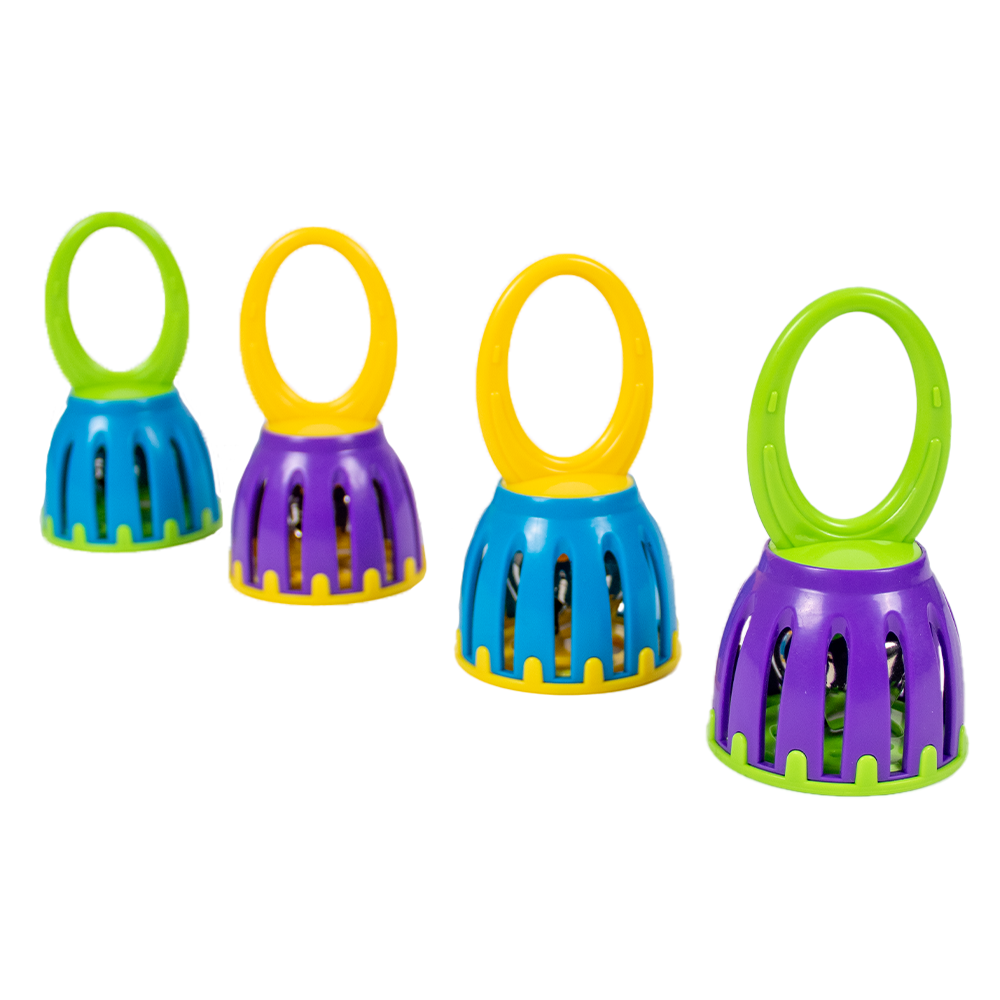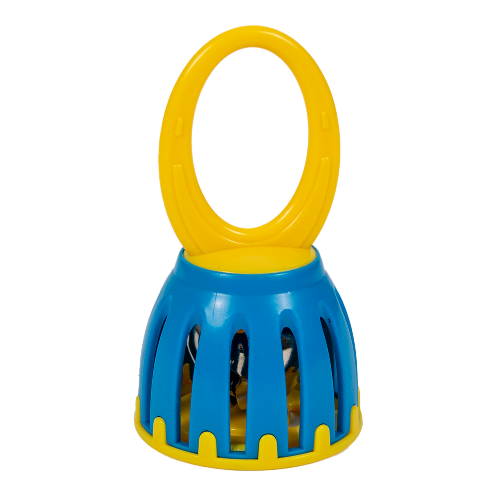 This adorable, bright bell is a favorite! The bells is fully enclosed for safety and the round handle makes it easy for small children to hold.