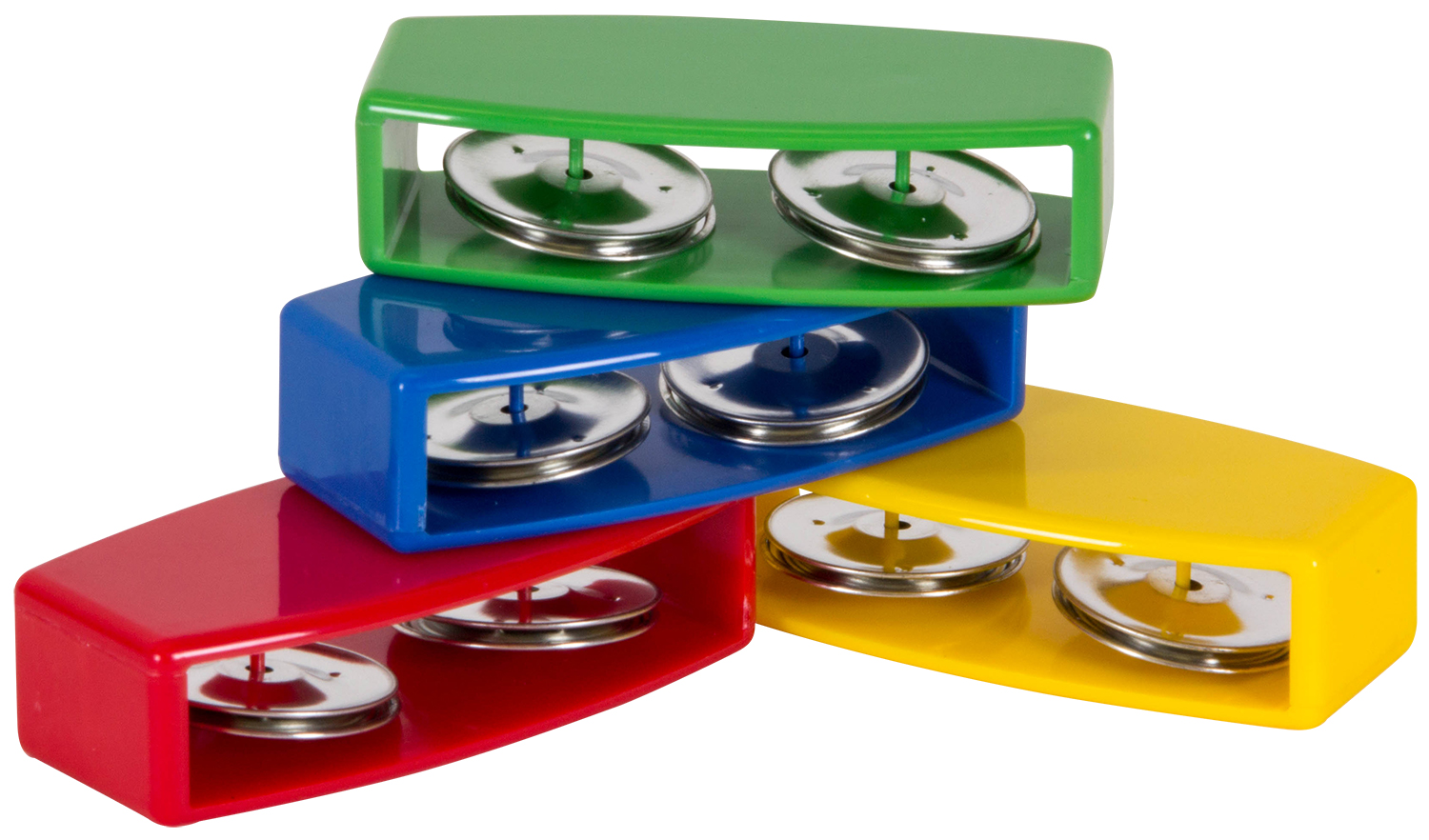 The palm jingles are made out of plastic with reinforced pins holding the two sets of jingles in place. The jingles themselves are constructed with rolled edges for safety and produce a bright and jolly sound. Each instrument is 4″ long and passes safety testing for 18 months an up. These palm jingles are the perfect, unique choice for a small musician whether at home or in the classroom!